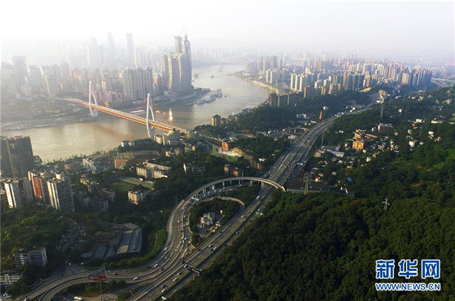這是2018年10月10日無人機(jī)拍攝的重慶城市景色。新華社記者 王全超 攝