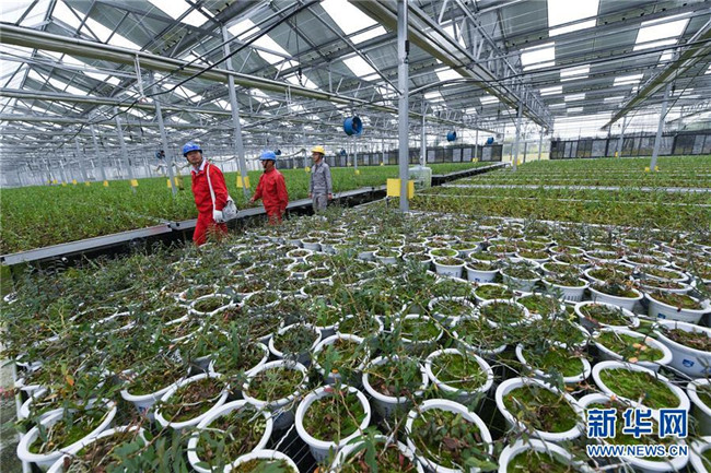 11月6日,在長興縣呂山鄉(xiāng)雁陶村的農(nóng)光互補園區(qū)的光伏大棚內(nèi),工作人員在檢查光伏設(shè)備運行情況。