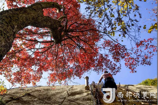 無限風(fēng)光在險峰,西岳紅葉天梯尋。