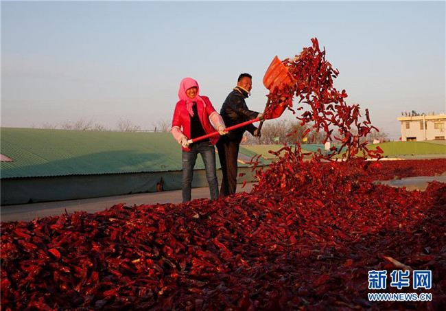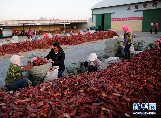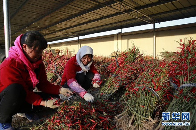 初冬時(shí)節(jié),甘肅省金昌市永昌縣水源鎮(zhèn)的村民們利用農(nóng)閑來到附近的辣椒加工廠打工,在家門口就業(yè)增收,每位村民每天可以增加100元左右的收入。
