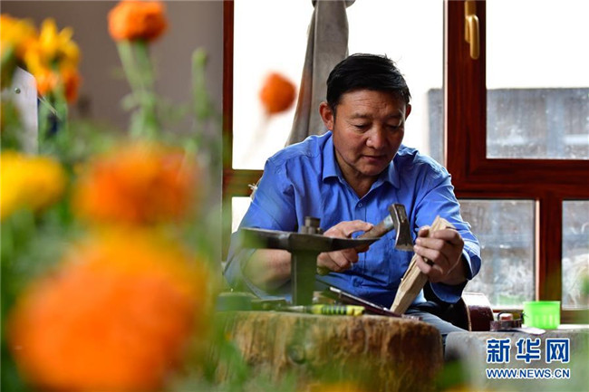 今年51歲的更求彭措是芒擦藏刀第四代傳人。在傳承藏家制作工藝的同時,他還認真帶徒傳藝,將工藝技術免費傳授給周邊農(nóng)牧民學徒,至今已累計為百余人傳授藏刀煅制工藝,帶領周邊村民走上致富之路。
