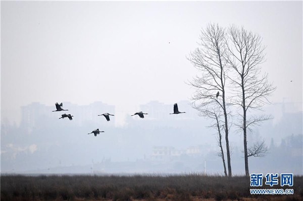 近日,大批候鳥陸續(xù)飛抵貴州草海國家級自然保護(hù)區(qū)越冬。草海管理委員會(huì)12月11日監(jiān)測數(shù)據(jù)顯示,目前已有黑頸鶴1500余只、灰鶴560余只、斑頭雁2400余只及其他候鳥飛抵草海越冬。近年來,隨著草海加大生態(tài)環(huán)境保護(hù)力度,前來此地越冬的候鳥逐年增多。新華社記者楊文斌攝