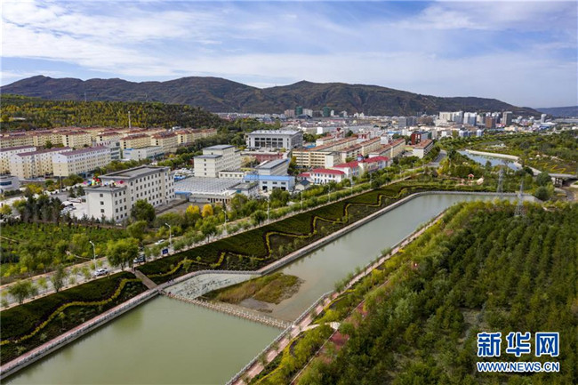 寧夏固原市隆德縣境內(nèi)的渝河兩岸健身步道、綠化景觀等設(shè)施完善,成為居民休閑娛樂的好去處(10月11日無人機拍攝)。 新華社記者 馮開華 攝