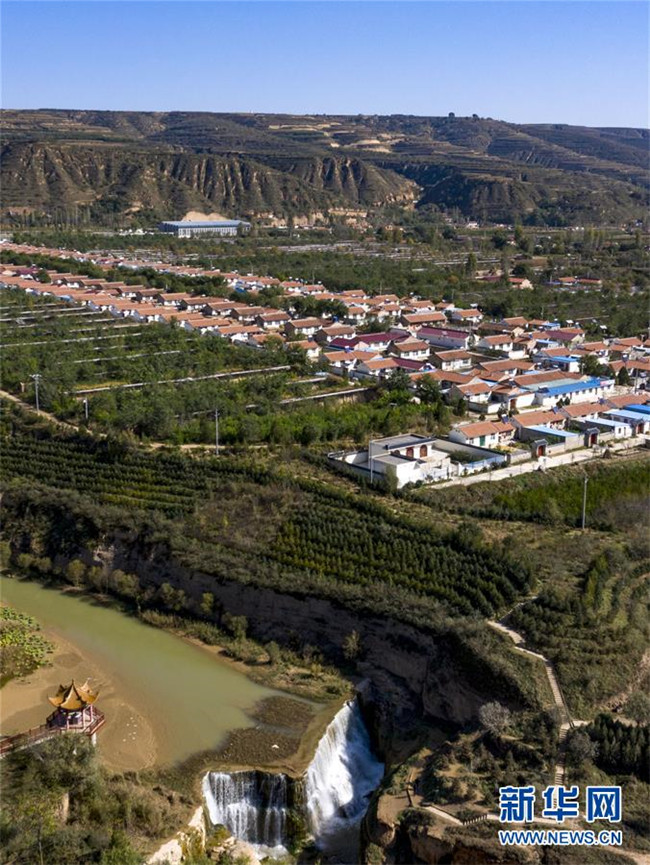 流經(jīng)寧夏固原市彭陽縣城陽鄉(xiāng)的茹河,因地殼變化和河床運動形成旱塬上的瀑布,當(dāng)?shù)匾源税l(fā)展鄉(xiāng)村旅游(10月12日無人機拍攝)。 新華社記者 馮開華 攝
