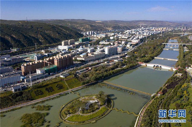 經(jīng)過綜合治理后的茹河成為寧夏固原市彭陽縣的一道新風(fēng)景(10月12日無人機拍攝)。 新華社記者 馮開華 攝