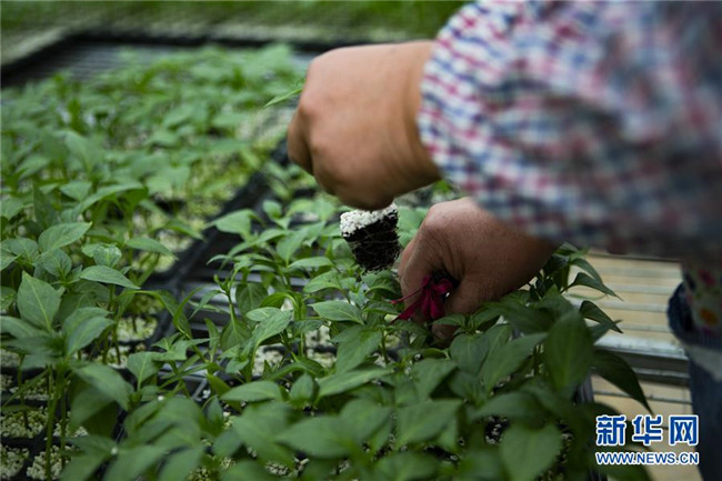 12月18日,在于都縣禾豐鎮(zhèn)一家富硒蔬菜種植基地,農民在采摘富硒辣椒。新華社記者 張浩波 攝
