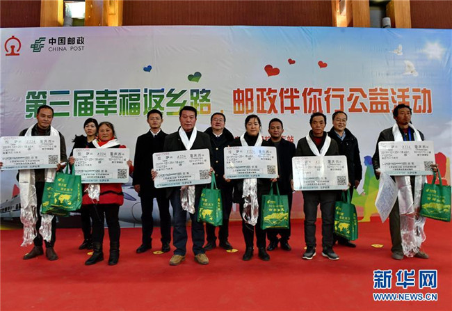 當(dāng)日,由中國(guó)郵政集團(tuán)公司西藏自治區(qū)分公司和青藏鐵路公司拉薩站共同組織的第三屆“幸福返鄉(xiāng)路·郵政伴你行”免費(fèi)贈(zèng)送火車票公益活動(dòng)在拉薩火車站舉行。中國(guó)郵政集團(tuán)公司西藏自治區(qū)分公司出資20余萬元購(gòu)買12月23日至12月26日拉薩至成都、重慶、西寧、蘭州方向共計(jì)436張火車票,免費(fèi)贈(zèng)送給西藏外來務(wù)工人員。青藏鐵路公司拉薩站為受助務(wù)工人員設(shè)置專用安檢通道和候車專區(qū)。