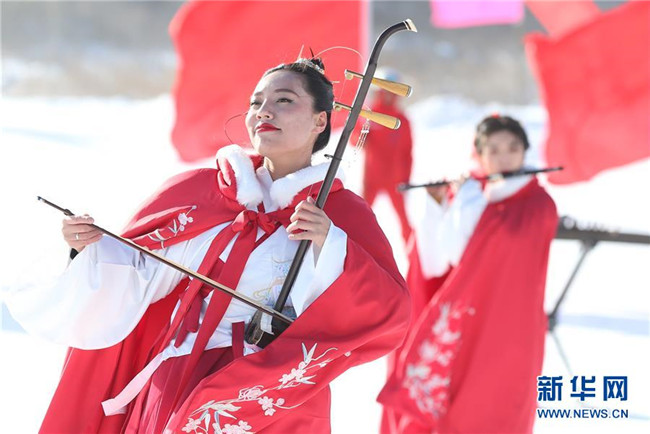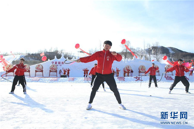 12月26日,表演者在啟動(dòng)儀式上表演。當(dāng)日,寧夏固原首屆冰雪文化旅游節(jié)在涇源縣婭豪國(guó)際滑雪場(chǎng)開(kāi)幕。本屆冰雪文化旅游節(jié)以“相約六盤山·歡樂(lè)冬季游”為主題,將冰雪資源、文化旅游和體育賽事相結(jié)合,吸引游客參觀游玩。新華社記者賈浩成攝