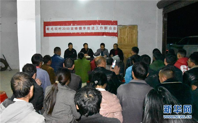 11月15日夜,貴州省銅仁市沿河土家族自治縣后坪鄉(xiāng)斯毛壩村,下沉一線的縣、鄉(xiāng)干部及村干部組織村民商討產(chǎn)業(yè)結(jié)構(gòu)調(diào)整。新華社記者 段羨菊 攝