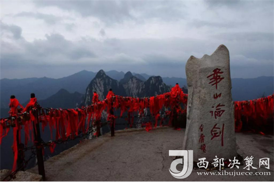 說到北峰,不可不提的自然是華山論劍了,在峰頂有一塊石牌,上面是金庸先生親筆題寫的“華山論劍”,此處也成為游客登臨華山必到之處。