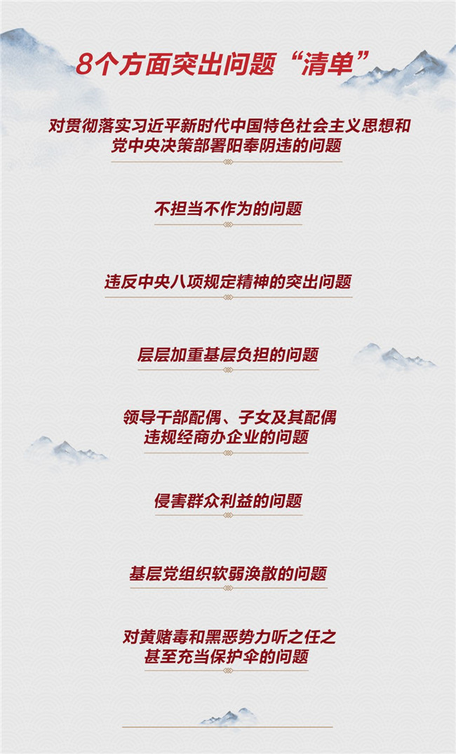 去年7月,一份《關(guān)于在“不忘初心、牢記使命”主題教育中開展專項(xiàng)整治的通知》印發(fā)全國,列出了8個(gè)方面的突出問題。主題教育把開展專項(xiàng)整治作為增強(qiáng)實(shí)效的重要抓手,做到問題不解決不松勁、解決不徹底不放手、群眾不認(rèn)可不罷休。12月底,中共中央政治局“不忘初心、牢記使命”專題民主生活會(huì)指出,“突出問題專項(xiàng)整治成效明顯”。