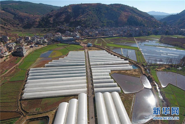 這是1月9日拍攝的云南省富民縣散旦鎮(zhèn)漢營(yíng)村草莓種植基地(無(wú)人機(jī)照片)。新華社記者楊宗友攝