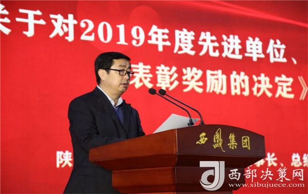 西鳳股份公司副董事長(zhǎng)、總經(jīng)理賈智勇宣讀《關(guān)于對(duì)2019年度先進(jìn)單位、先進(jìn)個(gè)人進(jìn)行表彰獎(jiǎng)勵(lì)的決定》