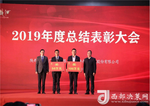 西鳳集團(tuán)公司黨委副書(shū)記、紀(jì)委書(shū)記劉周虎、副總裁楊會(huì)軍為先進(jìn)單位頒發(fā)獎(jiǎng)牌