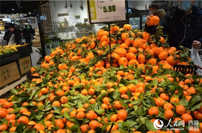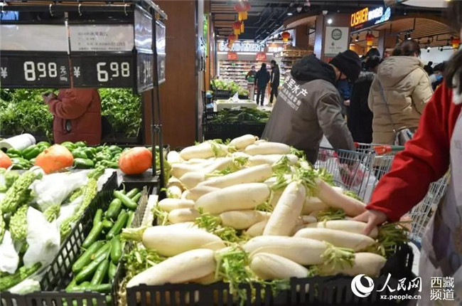 圖為日喀則超市內(nèi)市民選購(gòu)蔬菜