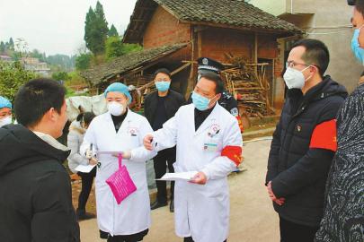 1月30日,在內(nèi)江市東興區(qū)白合鎮(zhèn)龍沖村,該鎮(zhèn)防控新型冠狀病毒感染肺炎疫情黨員先鋒隊隊員上門為群眾服務,筑牢聯(lián)防聯(lián)控基礎。 李建明攝