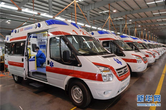 在江西江鈴汽車集團改裝車股份有限公司負(fù)壓救護車生產(chǎn)基地內(nèi),工作人員在負(fù)壓救護車生產(chǎn)線上進(jìn)行裝配調(diào)試(2月6日攝)。 新華社記者 彭昭之 攝