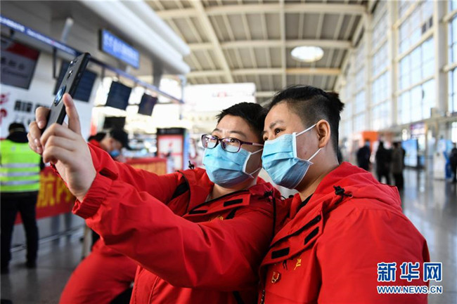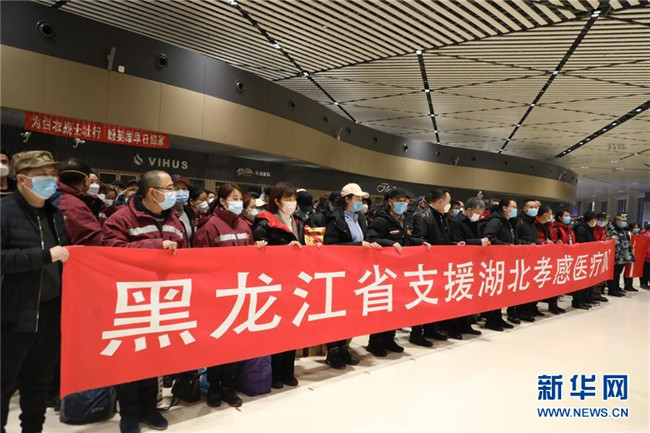 2月12日,黑龍江省對口支援湖北孝感醫(yī)療隊從哈爾濱出發(fā)。 新華社記者 齊泓鑫 攝