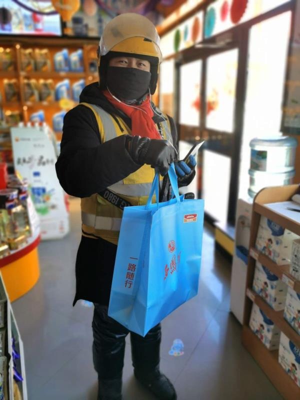 榆陽(yáng)佳能加油站員工霍靜迅速拿起手機(jī)確認(rèn)訂單,欣喜若狂,將商品依次消毒放入昆侖好客打包袋等待快遞小哥取單。因?yàn)槭巧暇€的第一單,特意在打包袋里面裝有溫馨提示小紙條:“戴口罩、勤洗手,中國(guó)加油!武漢加油!中國(guó)石油與您同在!”