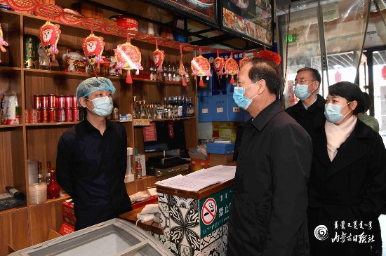 3月12日,自治區(qū)黨委書(shū)記、人大常委會(huì)主任石泰峰隨機(jī)走進(jìn)一家臨街餐館,檢查防疫措施,詢(xún)問(wèn)員工返崗和營(yíng)業(yè)情況。 內(nèi)蒙古日?qǐng)?bào)社融媒體記者 袁永紅 攝