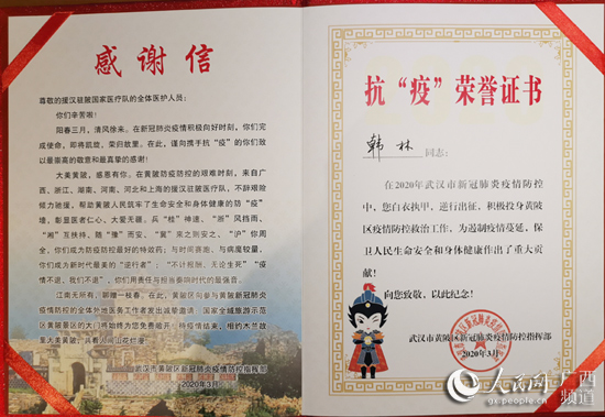 韓林收到的抗擊疫情榮譽(yù)證書。韓林供圖