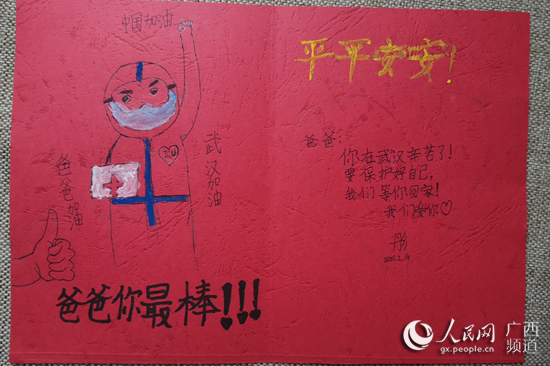 韓林將兒子制作的祝福卡片留在武漢。韓林供圖