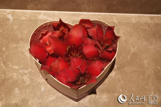 到了酒店,我收到了一份特殊的禮物,是兒子親手為我裝飾的木棉花花籃。晚上看電視報(bào)道時,我才知道,原來家人為了見我一面,提前一個小時就到酒店外等候了。在等待的時候,兒子就去撿了很多木棉花花瓣,擺成“心”的形狀。