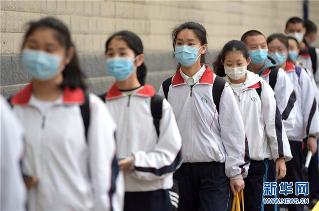 4月7日,西安匯知中學(xué)初三學(xué)生排隊(duì)進(jìn)入校園。