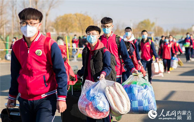 內(nèi)蒙古呼和浩特市第十二中學(xué)學(xué)生排隊(duì)進(jìn)入校園。