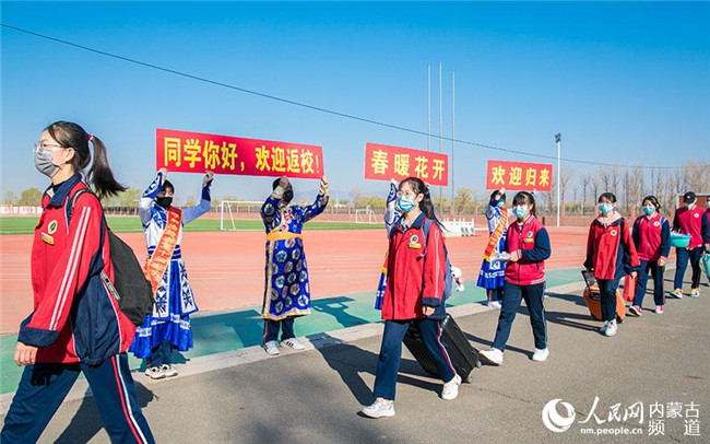 設(shè)置測溫消毒通道、實(shí)行錯峰分餐制、增設(shè)臨時隔點(diǎn)……4月26日,內(nèi)蒙古呼和浩特市玉泉區(qū)教育局多措并舉織密疫情防控安全網(wǎng)的前提下,高一、高二年級,初一、初二年級有序返校復(fù)學(xué)。這是該區(qū)第二批次學(xué)校開學(xué),高三、初三年級已于3月30日復(fù)課。(丁根厚 攝)
