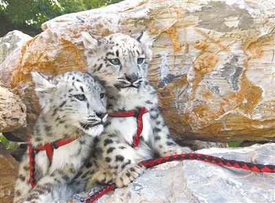 4月27日,西寧野生動物園繁育的11個(gè)月大的雌性雪豹雙胞胎與游客見面,這是繼2016年成功繁育一只雌性雪豹(傲雪)后,西寧野生動物園再次繁育的兩只雪豹,為國內(nèi)現(xiàn)存第2只和第3只人工繁育雪豹。