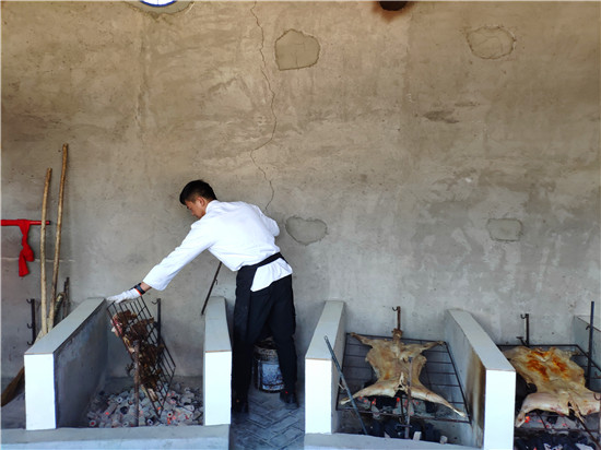 廚師在為客人準(zhǔn)備烤全羊
