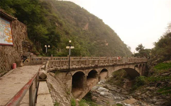 原潭側(cè)巖石上建有廟宇叫五龍宮,宮內(nèi)供有五位龍君,文化革命前殘?jiān)€在,“文革”后徹底毀廢。由于山洪原因,潭逐漸被碎石填塞,今已不復(fù)存在。唯潭上的五龍橋及橋頭上的大型五龍彩色壁畫(huà)依然向游人訴說(shuō)著五龍?zhí)睹利惖膫髡f(shuō)。橋欄鐫刻的“五龍橋”三字是當(dāng)時(shí)任中共中央書(shū)記處書(shū)記的胡喬木同志所書(shū)。