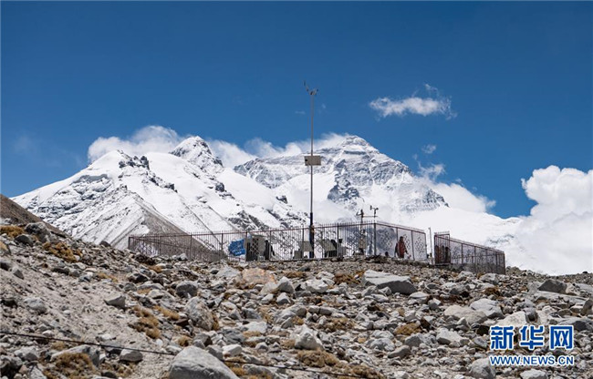 這是位于珠峰大本營的自動(dòng)氣象站(5月10日攝)。 新華社記者 晉美多吉 攝