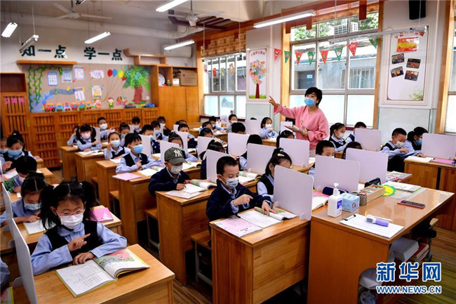 5月11日,陜西省西安市新城區(qū)后宰門小學一年級的學生在上課。新華社記者 劉瀟 攝