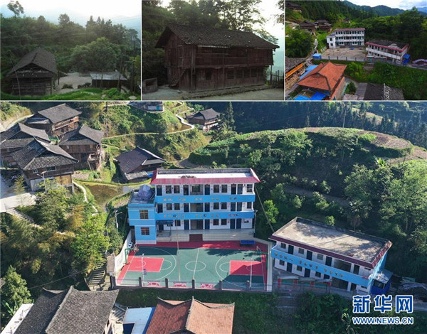 這張拼版照片的上圖左、中為黨鳩小學(xué)2006年之前一直使用的木質(zhì)教學(xué)樓(資料照片);上圖右為黨鳩小學(xué)自2006年至改造前的教學(xué)樓(新華社記者黃孝邦2019年7月5日攝,無人機(jī)照片);下圖為自2019年起至今升級改造后的黨鳩小學(xué)(新華社記者黃孝邦2020年4月15日攝,無人機(jī)照片)。