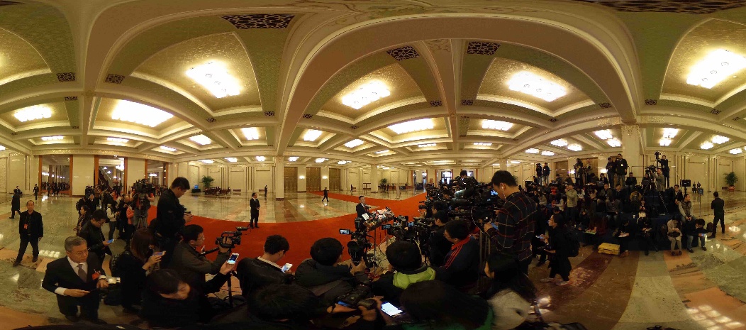2016年3月16日,第十二屆全國(guó)人民代表大會(huì)第四次會(huì)議在北京人民大會(huì)堂舉行閉幕會(huì)。在“部長(zhǎng)通道”首次有20多位部長(zhǎng)主動(dòng)發(fā)聲。這是記者在人民大會(huì)堂“部長(zhǎng)通道”采訪。