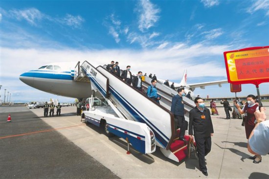 5月20日,參加十三屆全國人大三次會議的西藏人大代表抵京。本報記者 旦增西旦 攝