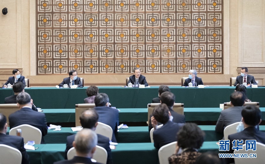 5月23日,中共中央政治局常委、全國(guó)人大常委會(huì)委員長(zhǎng)栗戰(zhàn)書看望出席全國(guó)政協(xié)十三屆三次會(huì)議的民建、農(nóng)工黨委員并參加討論。 新華社記者 張領(lǐng) 攝