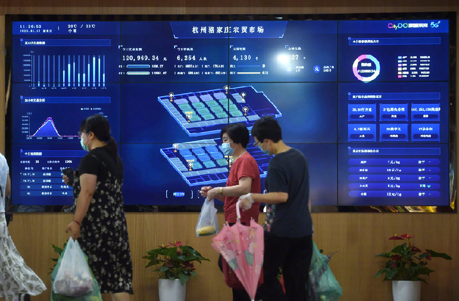 浙江省杭州市的5G農(nóng)貿(mào)市場——駱家莊農(nóng)貿(mào)市場。(新華社記者韓傳號 攝)