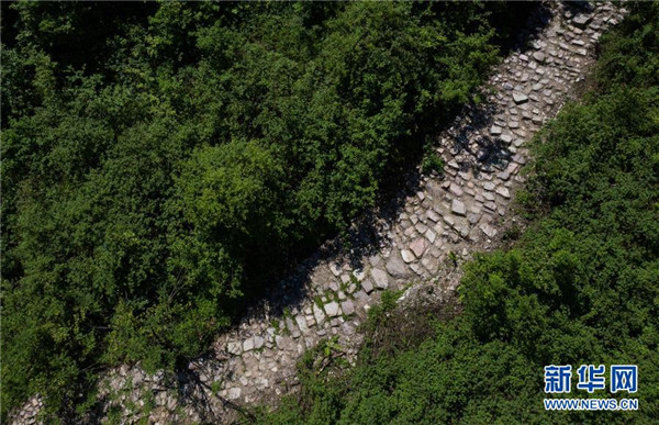 俯瞰大相嶺茶馬古道中修復完成的一段(無人機照片,5月25日攝)。新華社記者江宏景攝