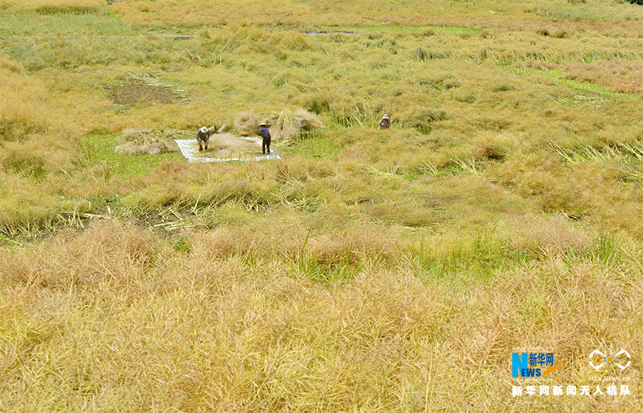 重慶酉陽(yáng),農(nóng)民們正抓緊時(shí)間收割油菜。新華網(wǎng)發(fā)(陳碧生 攝)