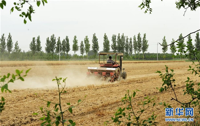 時下,河北省各地農(nóng)民抓住有利時機,在搶收小麥的同時播種玉米,確保不誤農(nóng)時。
