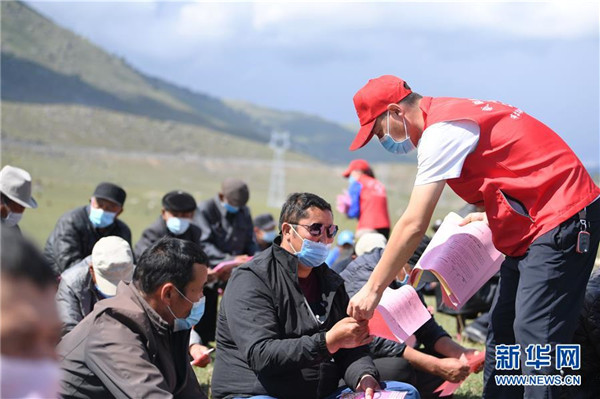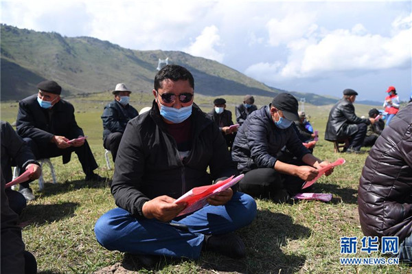 6月20日,在布爾津縣阿貢蓋提草原,牧民在看布爾津縣也格孜托別鄉(xiāng)克孜勒托蓋村家庭醫(yī)生簽約團(tuán)隊發(fā)放的宣傳材料。圍繞實現(xiàn)人人享有基本醫(yī)療衛(wèi)生服務(wù)目標(biāo),2016年起,新疆布爾津縣開展家庭醫(yī)生簽約服務(wù)工作。該縣組建家庭醫(yī)生簽約團(tuán)隊65個,團(tuán)隊醫(yī)務(wù)人員233名,通過手機(jī)APP、基本公衛(wèi)系統(tǒng)與全縣建檔立卡貧困戶進(jìn)行電子化簽約,提升村醫(yī)隨訪的工作效率和質(zhì)量。截至目前,已完成簽約42936人,履約40043人。新華社記者沙達(dá)提攝
