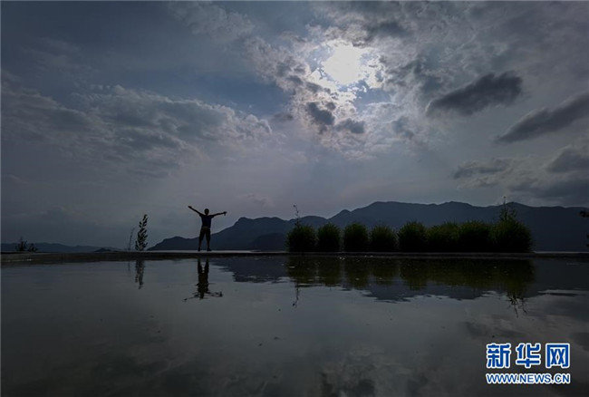 6月26日,在重慶武隆仙女山懶壩景區(qū),游客在觀景平臺(tái)上欣賞美麗的景色。新華社記者 劉潺 攝