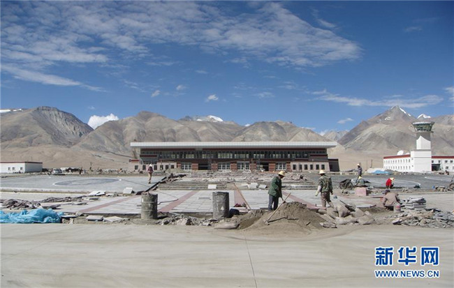 2007年7月29日,阿里昆莎機(jī)場(chǎng)奠基開工。 新華社發(fā)