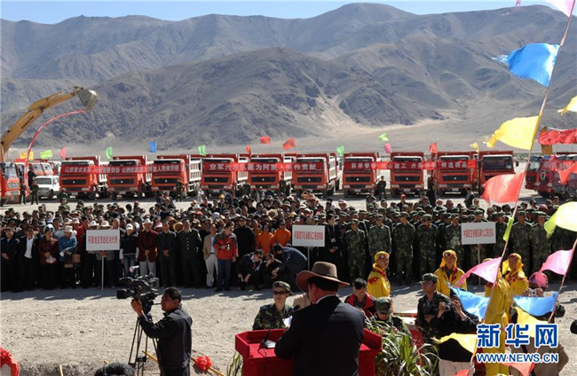 阿里昆莎機(jī)場(chǎng)建設(shè)機(jī)具入場(chǎng)儀式(2007年7月29日攝)。新華社發(fā)