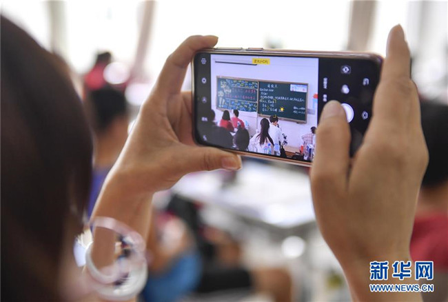 7月6日,吉林省孤兒學(xué)校高三年級班主任吳東輝用手機拍攝學(xué)生們寫給她的“請假條”。 新華社記者 許暢 攝