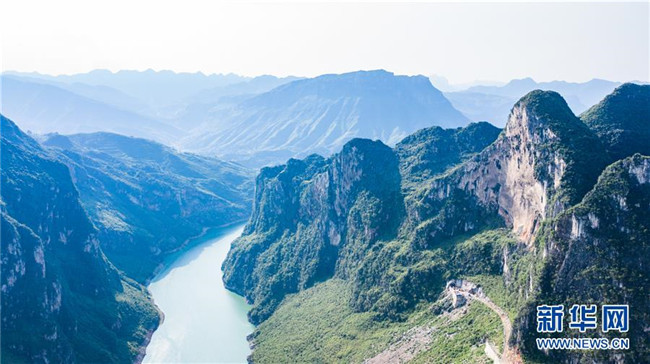 夏日時(shí)節(jié),貴州省六盤水市六枝特區(qū)牂牁江風(fēng)景區(qū)草木蒼翠,江水碧藍(lán),美景如畫。 新華社記者 陶亮 攝