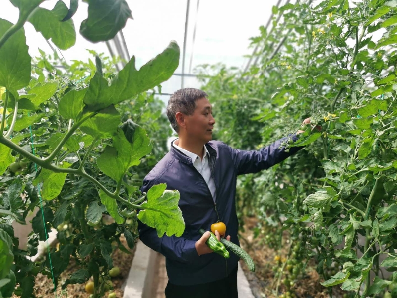 圖為西藏自治區(qū)阿里地委副書記、行署常務(wù)副專員張小平現(xiàn)場了解大棚果蔬種植情況。